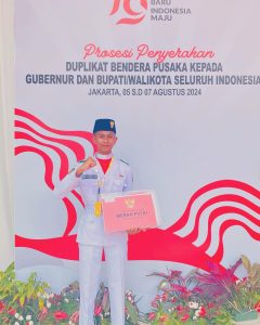 Kota Bima, Rabu (9/08/2024) – M. Zahran Bahreisy, siswa kelas XII.4 SMAN 4 Kota Bima, menjadi salah satu pengambil Duplikat Bendera Pusaka di Jakarta, yang akan diserahkan kepada gubernur dan bupati/wali kota seluruh Indonesia untuk dikibarkan pada saat upacara 17 Agustus 2024 yang akan datang.