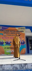 *Kota Bima, 21 Oktober 2024* – SMAN 4 Kota Bima menggelar upacara bendera rutin yang dilaksanakan pada hari Senin, 21 Oktober 2024, di lapangan upacara sekolah. Upacara ini dilaksanakan oleh kelas XI.1 dengan pembina upacara, Maidah, S.Pd. selaku Pembina akademiknya, Ibu Maidah mengingatkan kepada seluruh siswa tentang pentingnya disiplin dan rasa cinta tanah air.