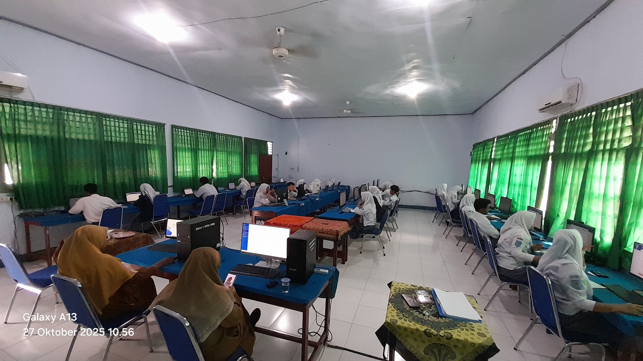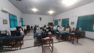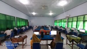 Pelaksanaan simulasi Tes Kemampuan Akademik (TKA) yang dijadwalkan berlangsung dari 27 hingga 30 Oktober 2025 hari ini berjalan dengan aman dan terkendali pada hari pertama. Kegiatan ini diikuti oleh 11 siswa kelas XII dan terbagi dalam empat ruang, dengan ruang 1 dan 2 yang berlokasi di Laboratorium Teknologi Informasi dan Komunikasi (Lab TIK) 1, serta ruang 3 dan 4 di Lab TIK 2.